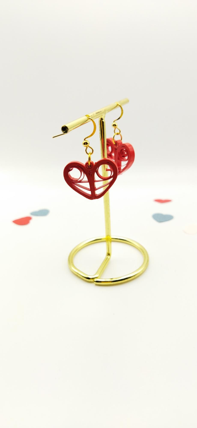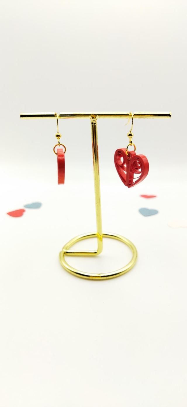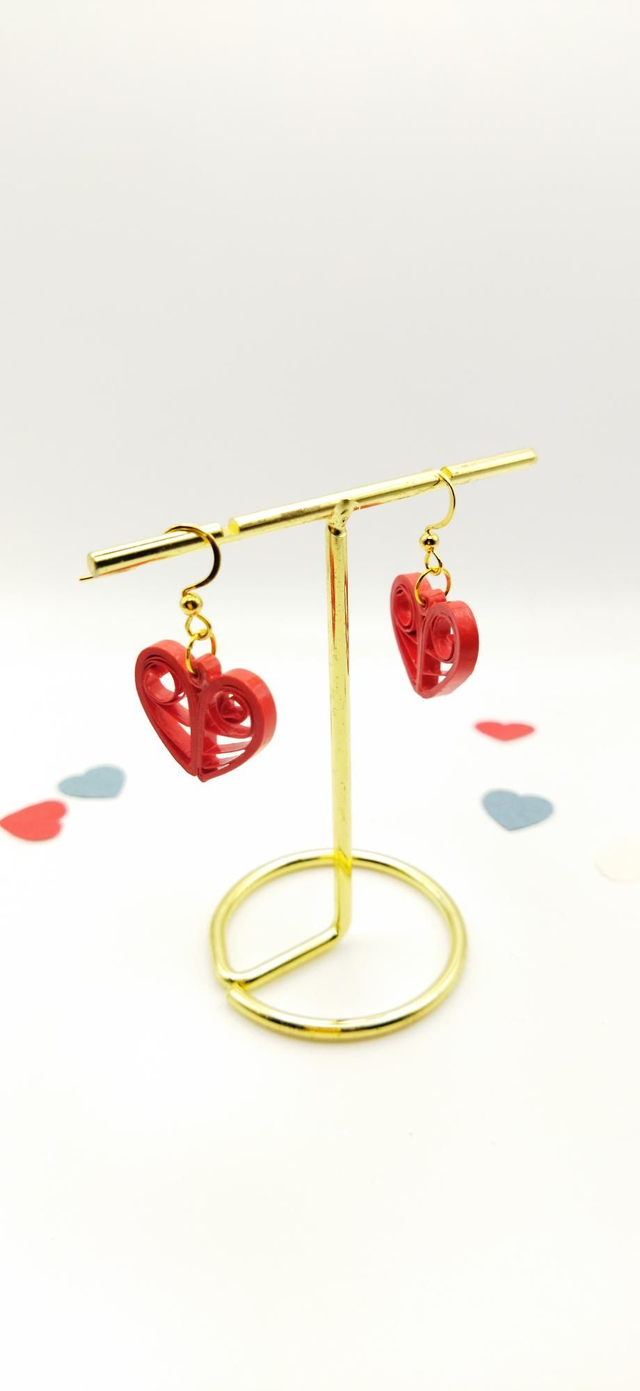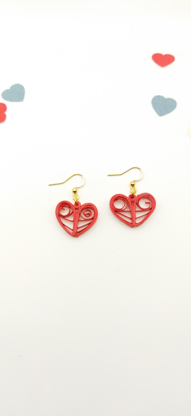 Boucles d'oreilles coeur de paperolles rouge