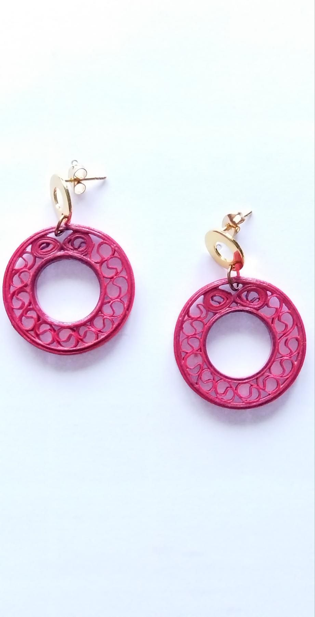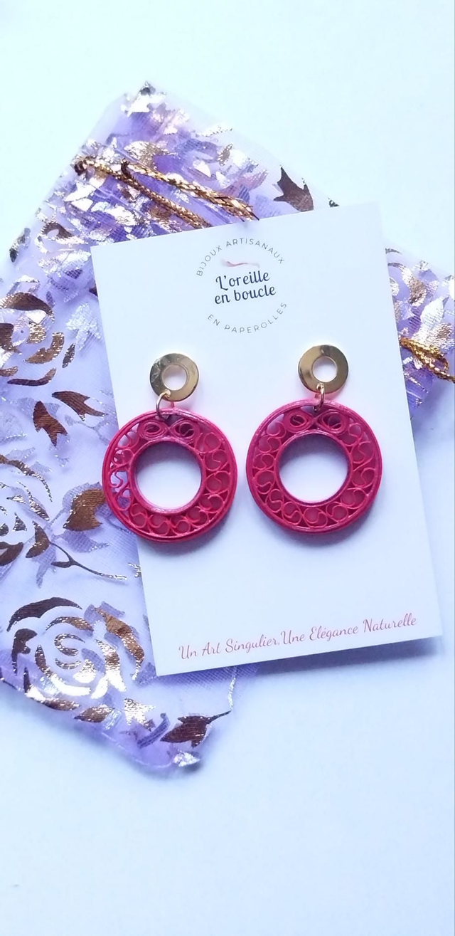 Les créoles mesurent environ 4 cm sur 3cm avec leurs accroches ajourées en acier doré