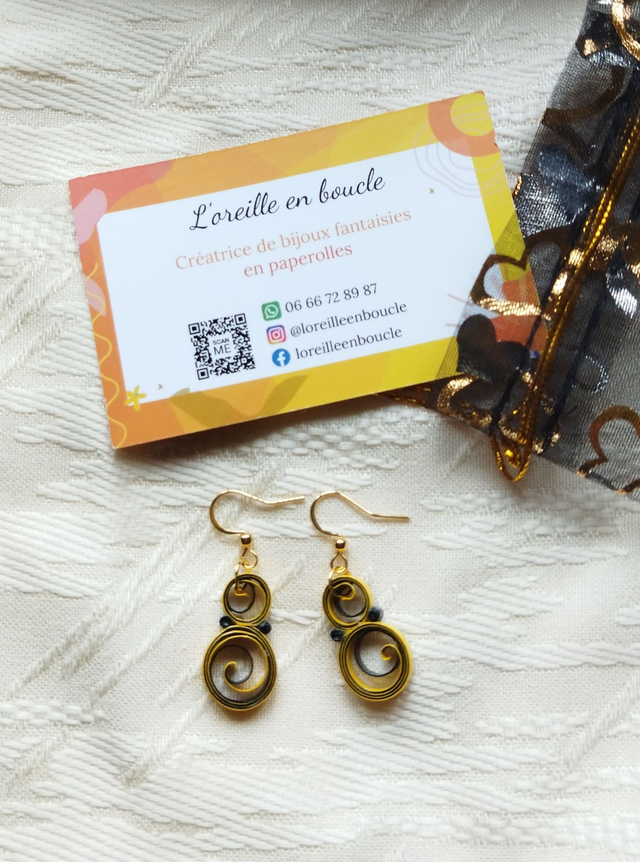 Petites boucles fantaisies jaune et noire.