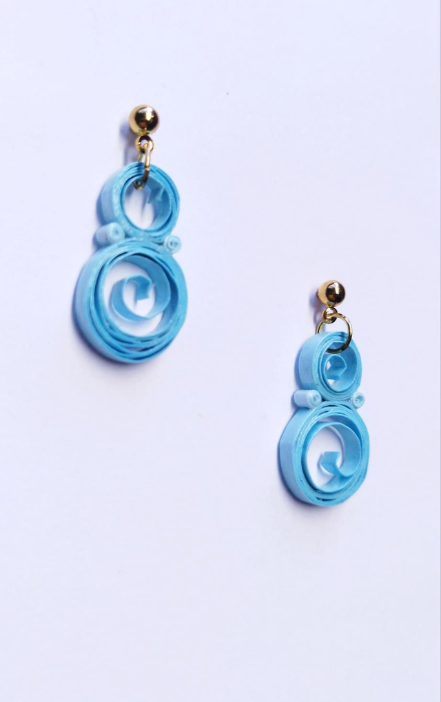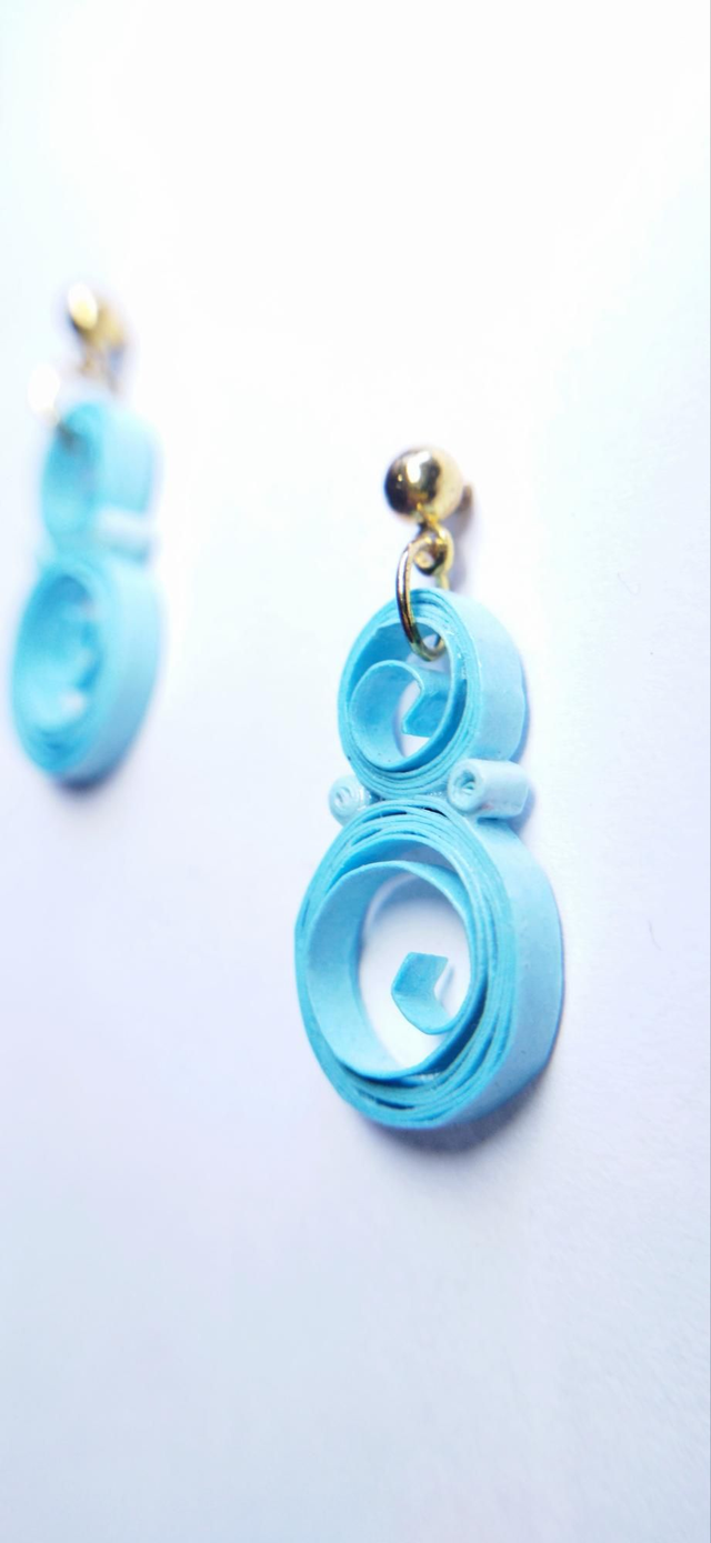 Toute mimi, toute bleue, ces petites boucles d'oreilles fantaisie font ressortir le travail des paperolles enroulées.